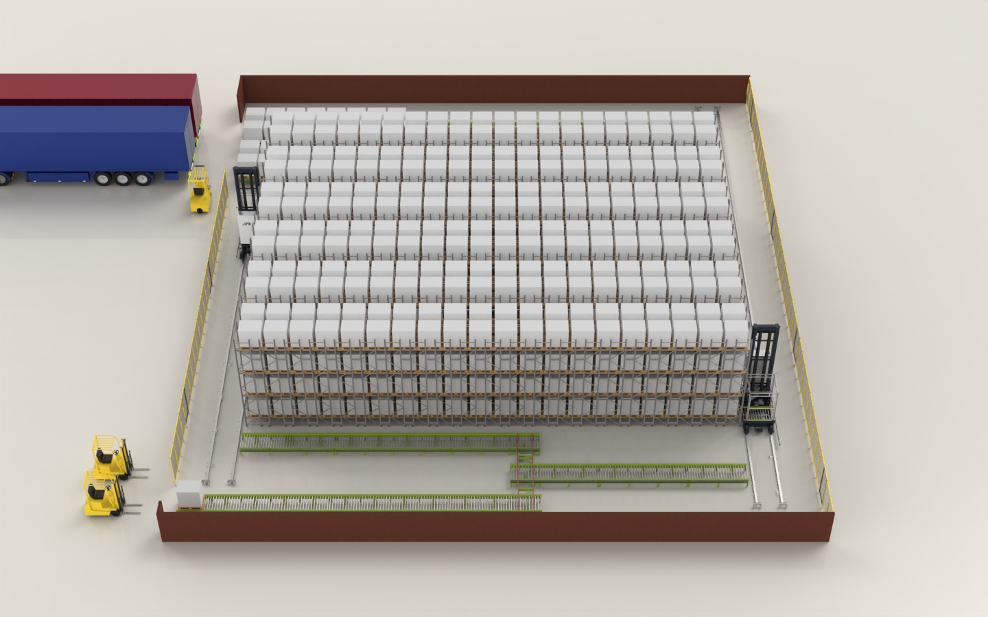 By combining high transport speed with optimized process control, the warehouse achieved a significantly increased throughput. Pallets are stored quickly and retrieved just as fast when needed. This leads to faster truck loading and dispatching – a decisive advantage in an industry where time slots are small and delivery reliability is critical.