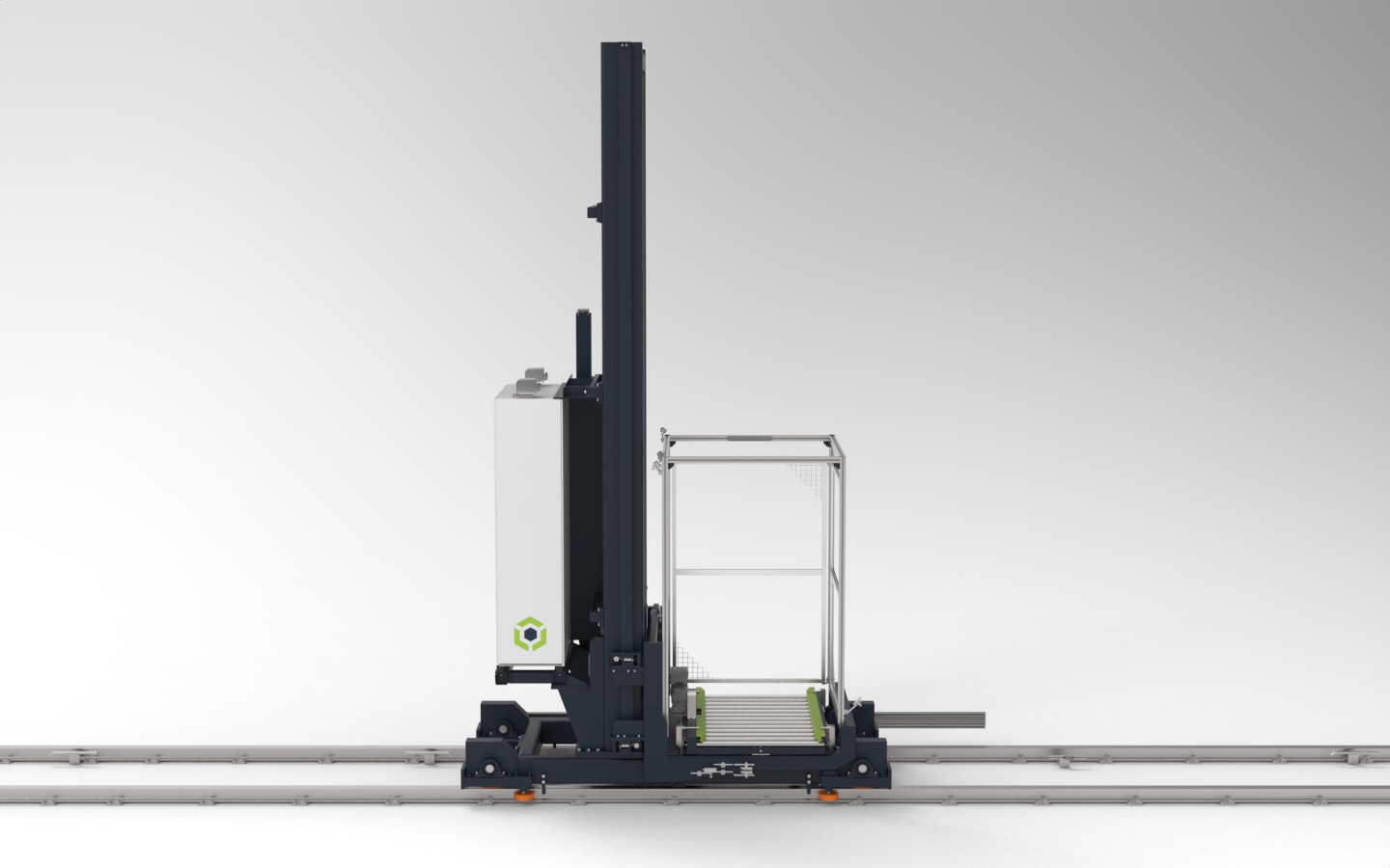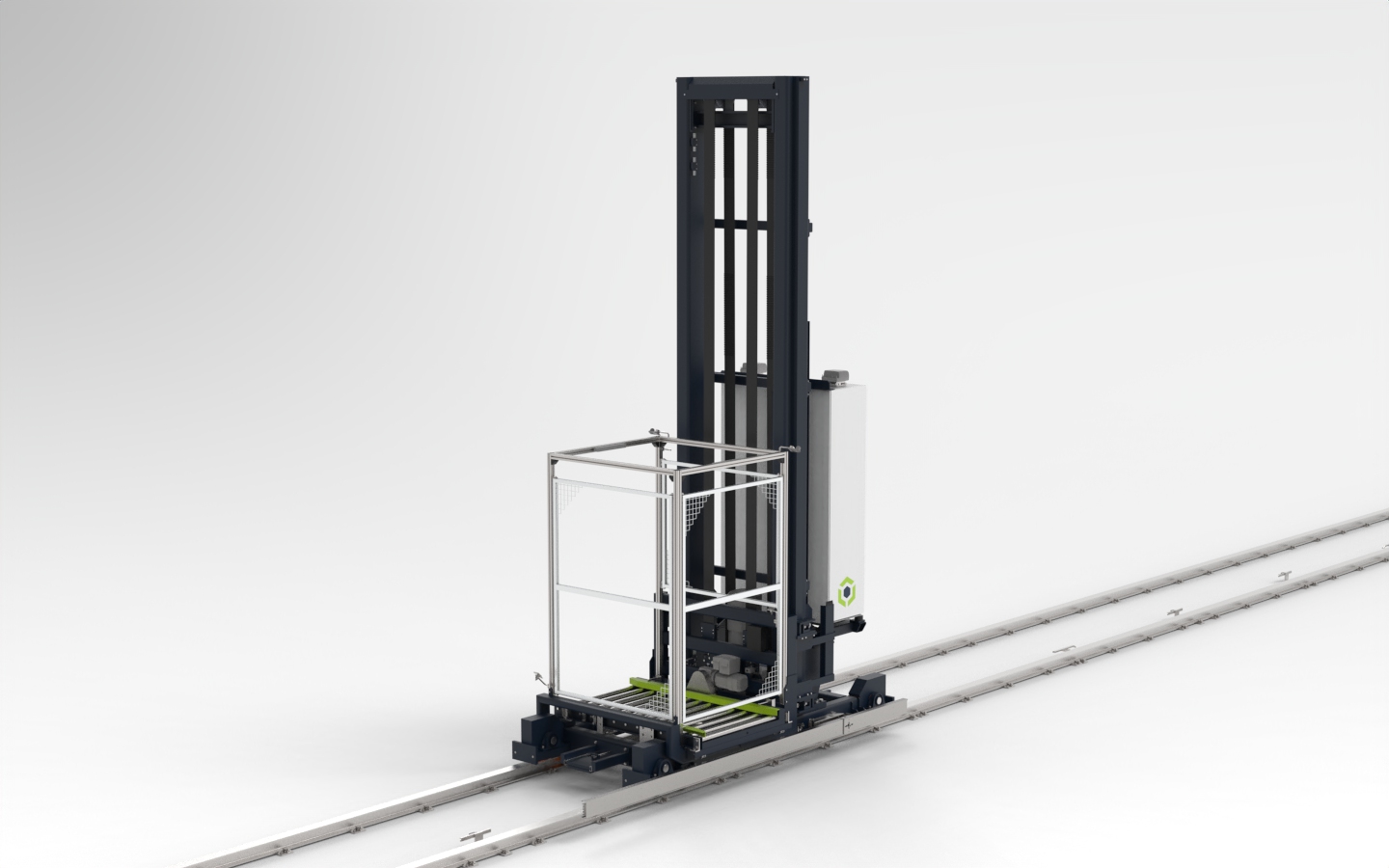 The transfer car is designed for high performance requirements. With an acceleration of 1 m/s² and a maximum speed of 160 m/min, pallets are transported quickly and reliably. These values enable a high pallet throughput and ensure an efficient material flow. Designing the transfer car as a towed version also ensures stable and safe movement, even at high loads and speeds.