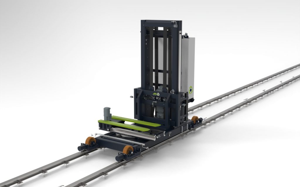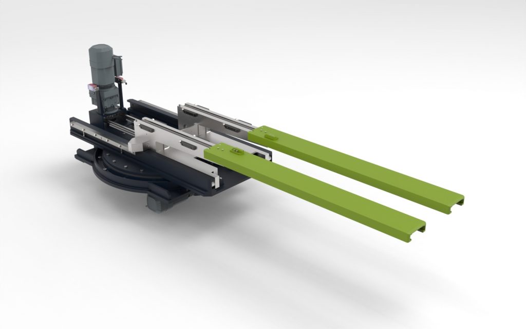 Drehschugabel für die Ein- und Auslagerung von Gestellen