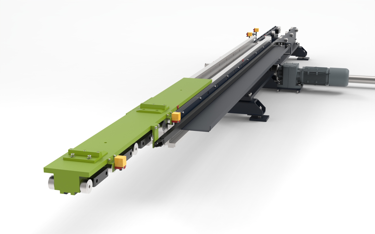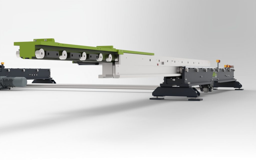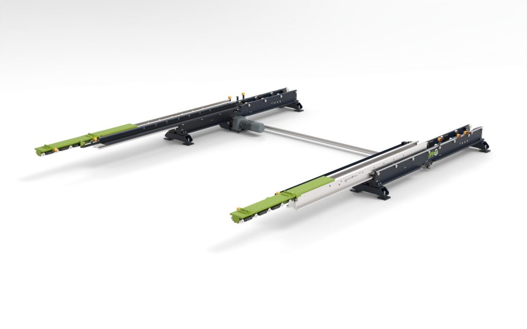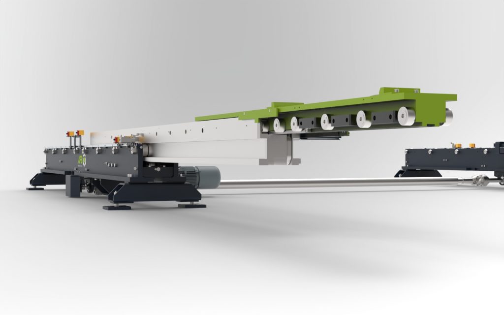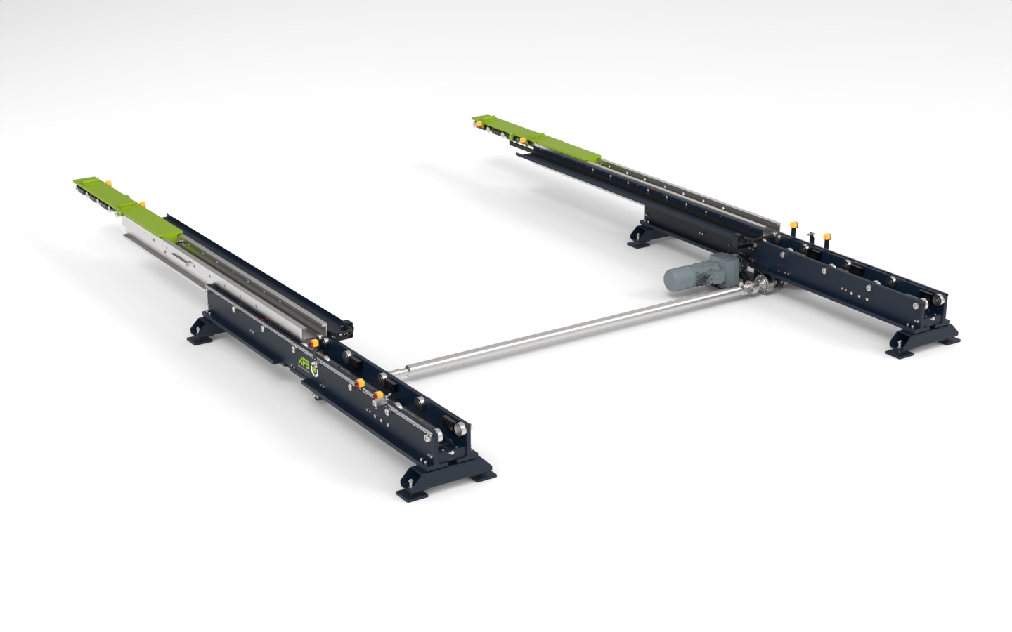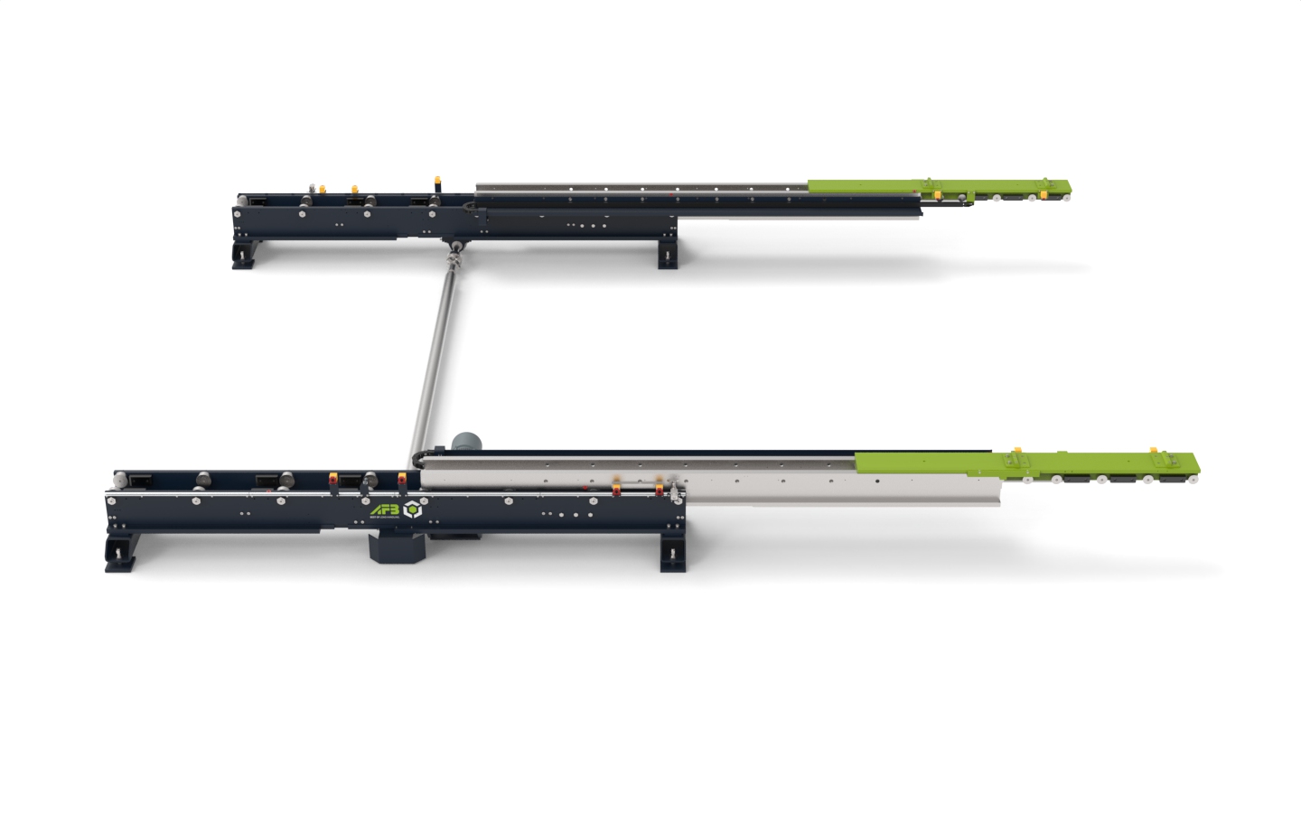 Der Teleskoptisch ist stationär auf einem robusten Gestell installiert und übernimmt die Ladungsträger von einem Vertikalförderer. Anschließend setzt er diese kontrolliert auf eine stationäre Einheit um, von der aus der Weitertransport oder die nachfolgende Verarbeitung erfolgt. Mit einem Ausfahrweg von 3.500 mm deckt die Anlage einen großen Arbeitsbereich ab. Dank der bewährten AFB-Qualität ist das System auf den Dauerbetrieb im 24/7-Industrieeinsatz ausgelegt – wartungsarm, präzise und langlebig.