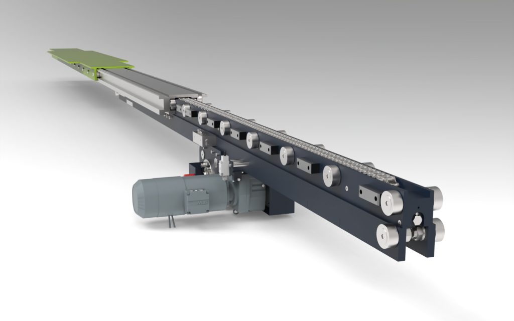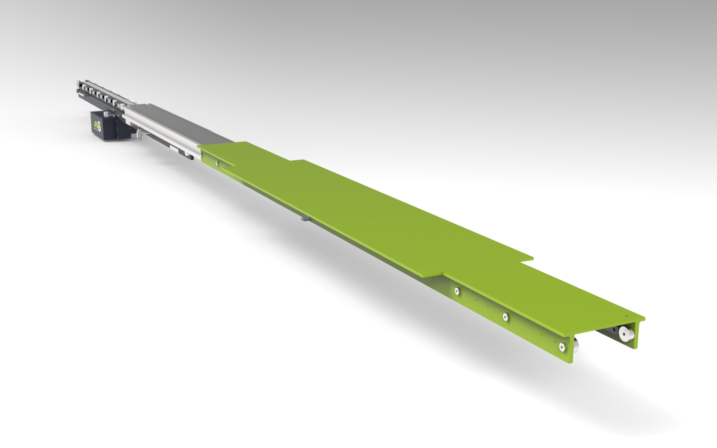 Der Teleskoptisch wurde für den 24/7-Betrieb unter anspruchsvollen Bedingungen entwickelt. Die solide Bauweise mit einer Breite von 420 mm am Obertisch und Aufnahmen für den Transport von Skids garantieren eine wiederholgenaue Abnahme von der Fördertechnik. Dieses Gerät dient als Bestandteil eines Pufferlagers und ist entscheidend für die reibungslose Versorgung der Montagelinie.