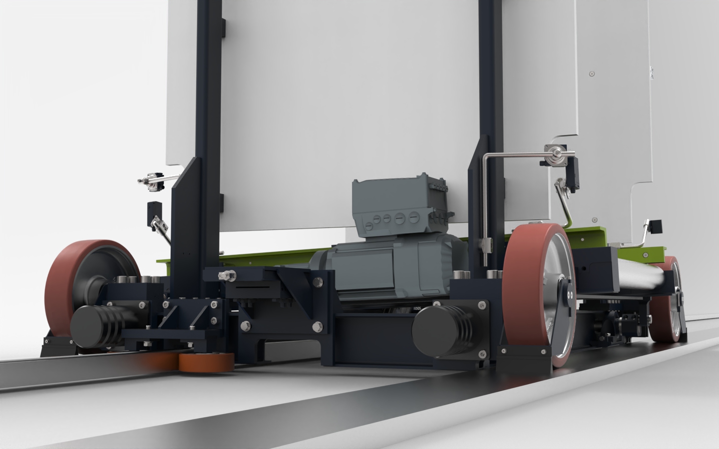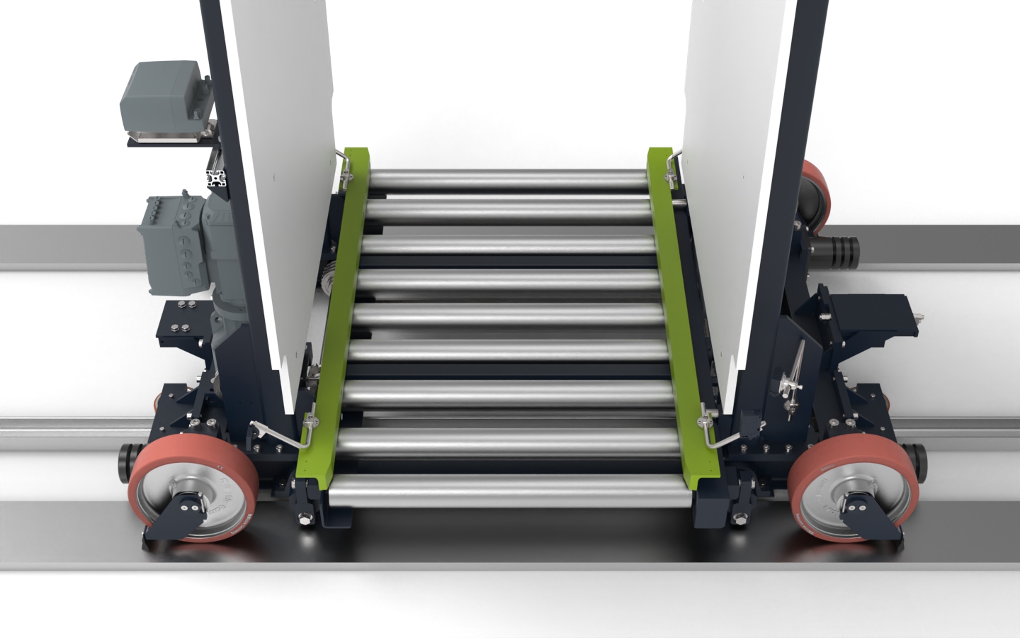 Unsere Verfahrwagen mit Fördertechnik sind speziell für die nahtlose Integration in automatisierte Materialflüsse konzipiert. Ob Rollenbahnen, Kettenförderer oder andere individuelle Systeme – die Fördertechnik wird exakt auf Ihre Anforderungen abgestimmt.