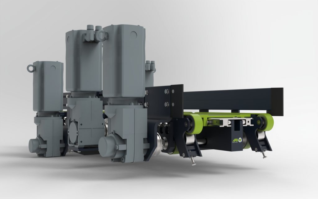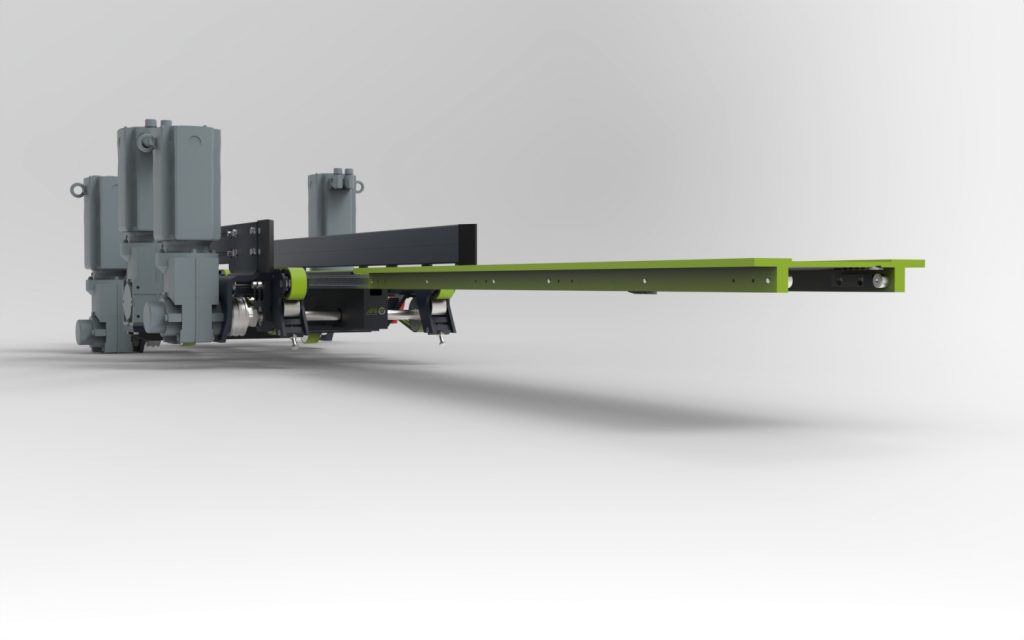 Our R32ST-180/240-N-1300 telescopic fork unit is specially designed for use in automated small parts warehouses. It combines a particularly flat and compact design with an integrated box guide. This design enables optimal use of the storage and retrieval machine’s installation space while ensuring the boxes are handled safely and efficiently. With a load capacity of 90 kg, this version of the telescopic fork unit can reliably meet the requirements of dynamic material flow processes.