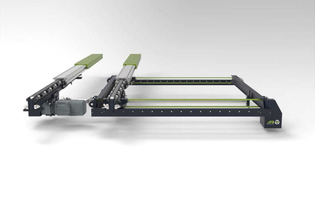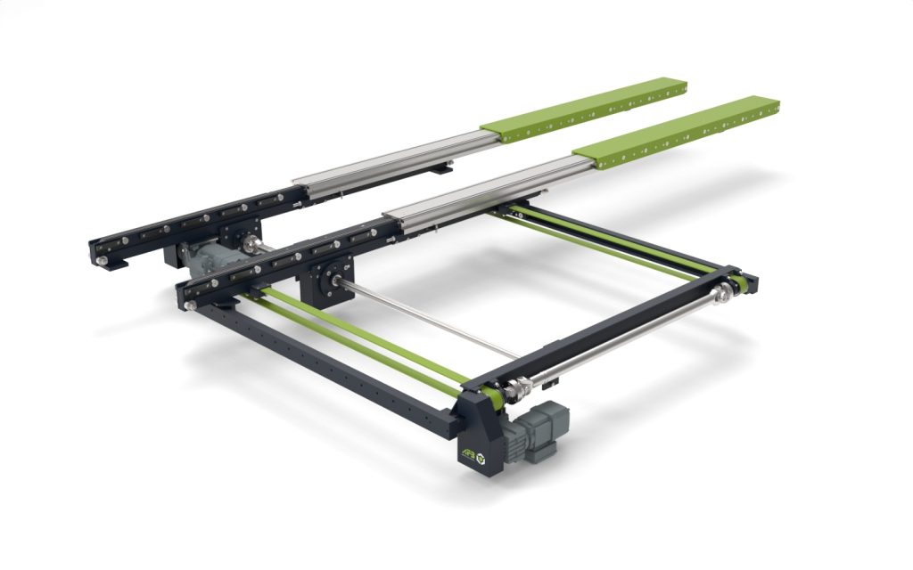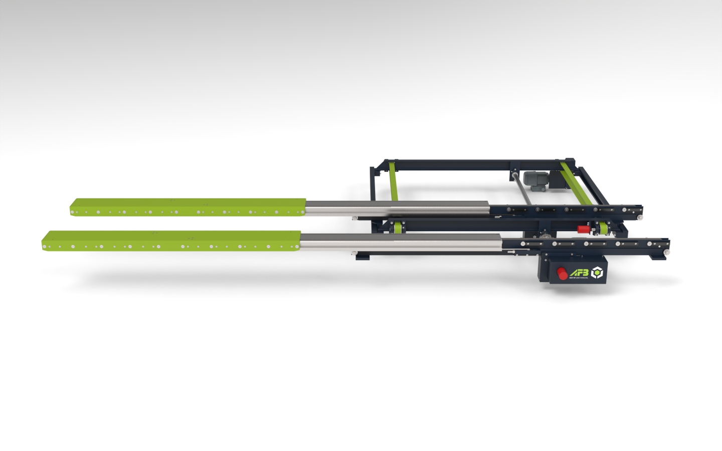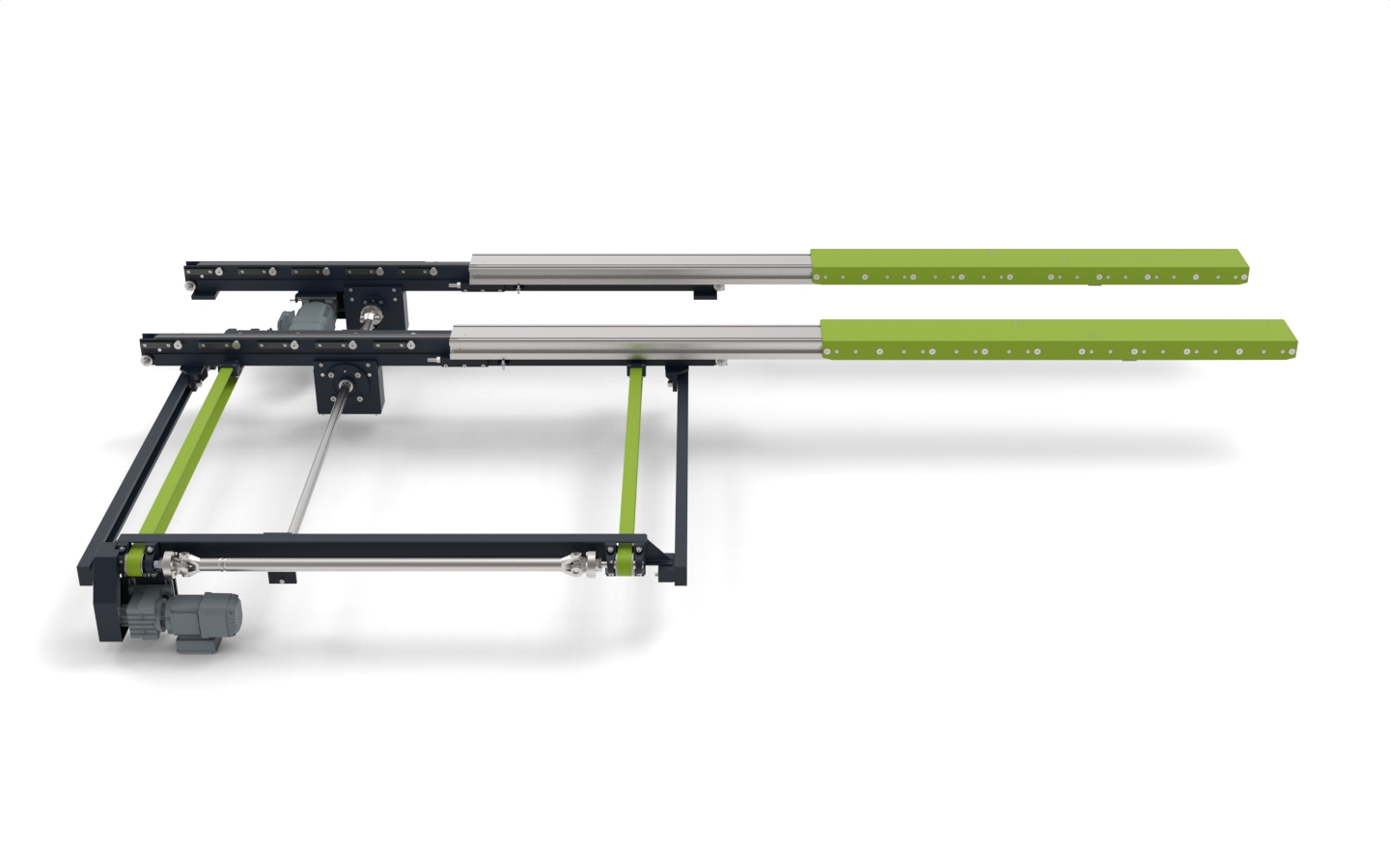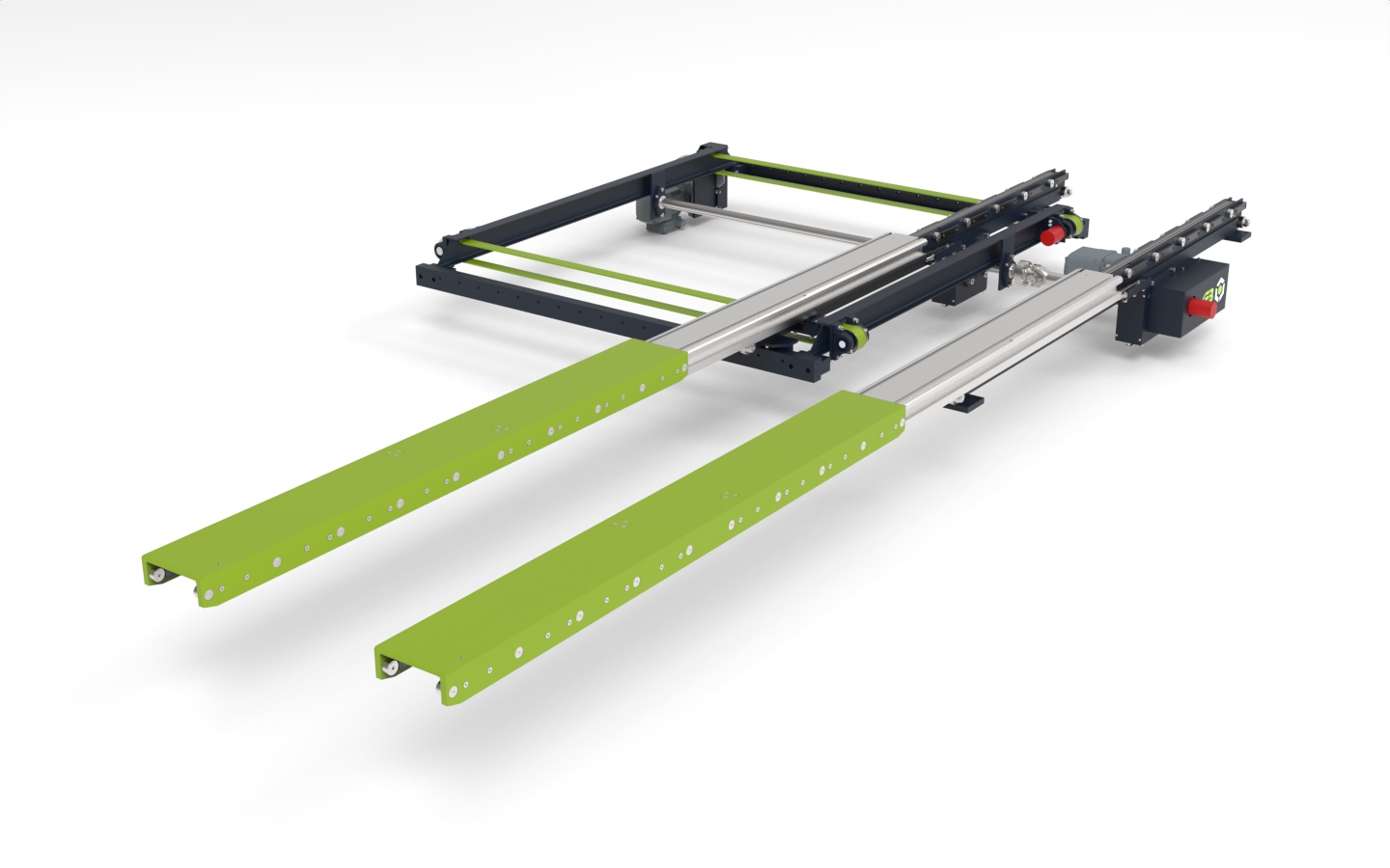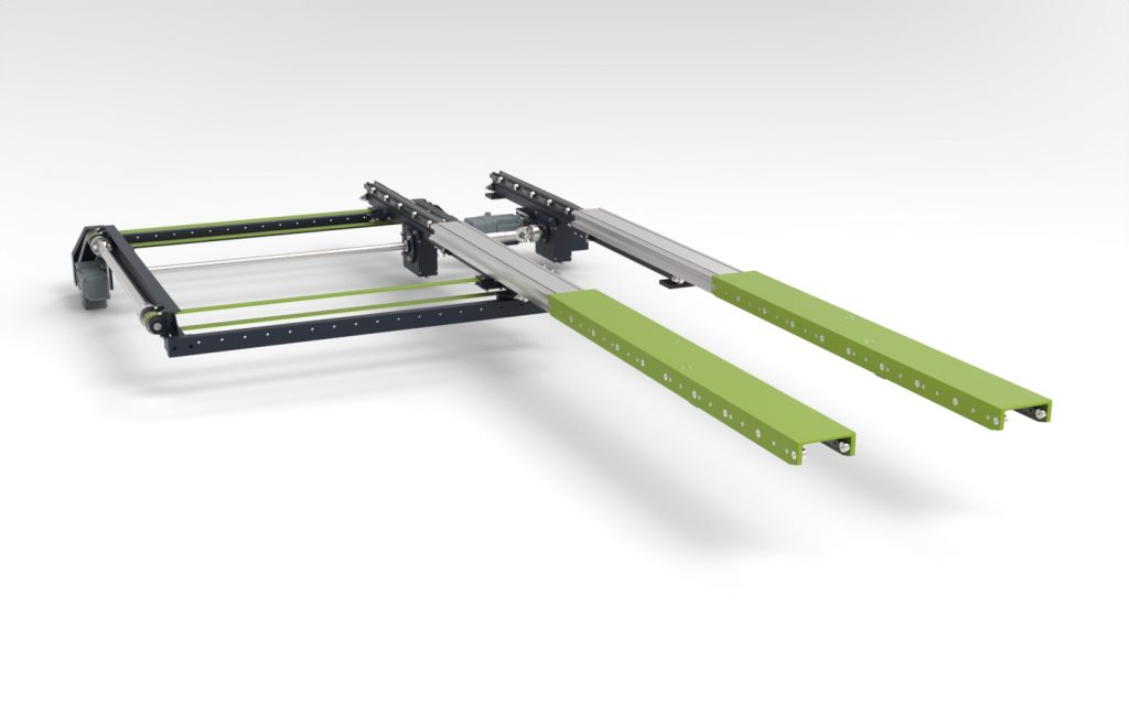 Our telescopic fork is designed for a payload of 1,000 kg, reliably handling even heavier frames. A main requirement in this application is the continuous operation: the system runs 24 hours a day, seven days a week, without interruption. The design was engineered accordingly for maximum availability, robustness, and ease of maintenance.