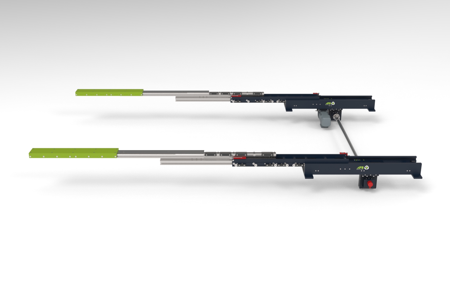 In modern paint shops, a continuous and reliable materialflow is crucial for maintaining quality and reducing cycle times. Our D4-0.5-E-1400 telescopic fork was used in an exciting project to supply drying ovens in a paint shop. It precisely transfers painted components to downstream ovens andensures a decoupled, cycle-independent material supply. The defined stroke enables the safe transfer of components even with varying oven lengths, eliminating the need for additional conveyor technology or manual handling.