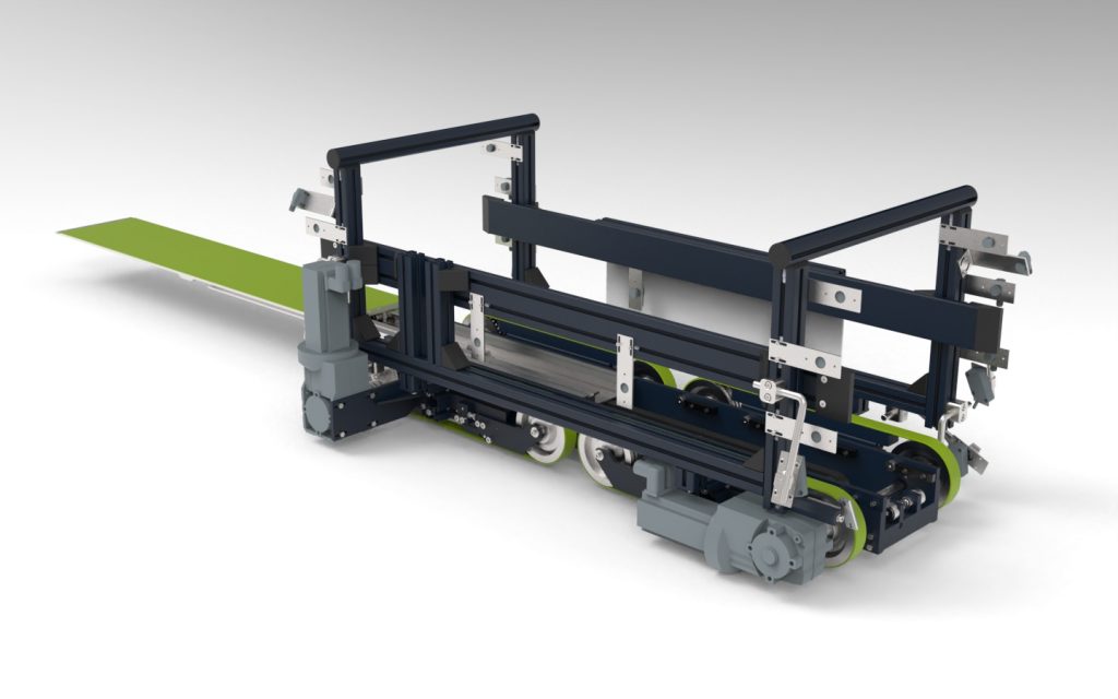 Maximale Lagerdichte und Effizienz – der MINILOAD Teleskoptisch D3-R60-260/600-ST-1150 ermöglicht die doppeltiefe Einlagerung von Tablaren in Gewächshäusern. Durch seine flache Bauweise bleibt er trotz dreifach ausfahrender Profile kompakt und platzsparend.